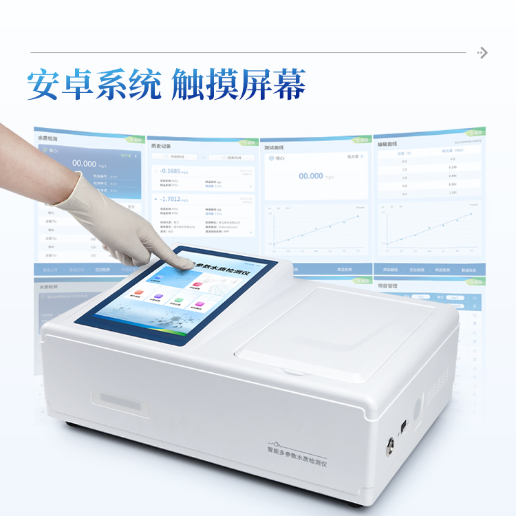 简要描述: 台式水质三氮检测仪是参考相关标准研发设计制造,本仪器主要检测水质氨氮、硝酸盐氮、亚硝酸盐氮浓度指标,兼具智能数据分析功能,图表、列表显示数据,分析一目了然;高清晰度彩色液晶触摸显示屏,Android智能操作系统,中文显示界面,中英文键盘,人性化操作,使用更简单。